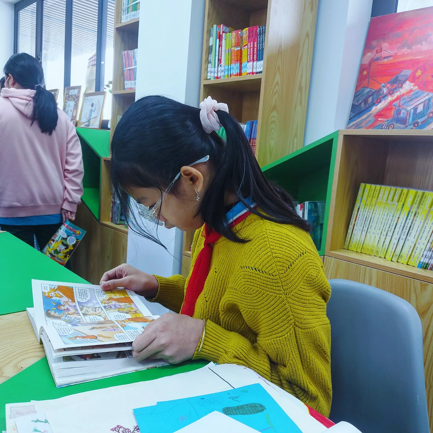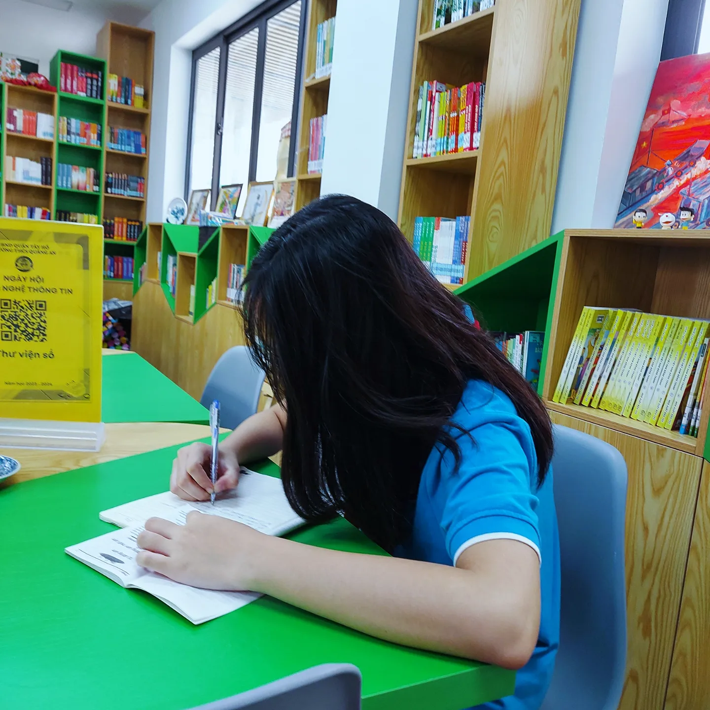 Sự không thuận lợi đến từ vị trí phòng thư viện không phải là lý do để các bạn nhỏ ngừng tìm đến thư viện. Các bạn ấy vẫn tìm cho mình cách để lên thư viện nhanh nhất có thể và kịp xuống lớp vào học tiết tiếp theo.