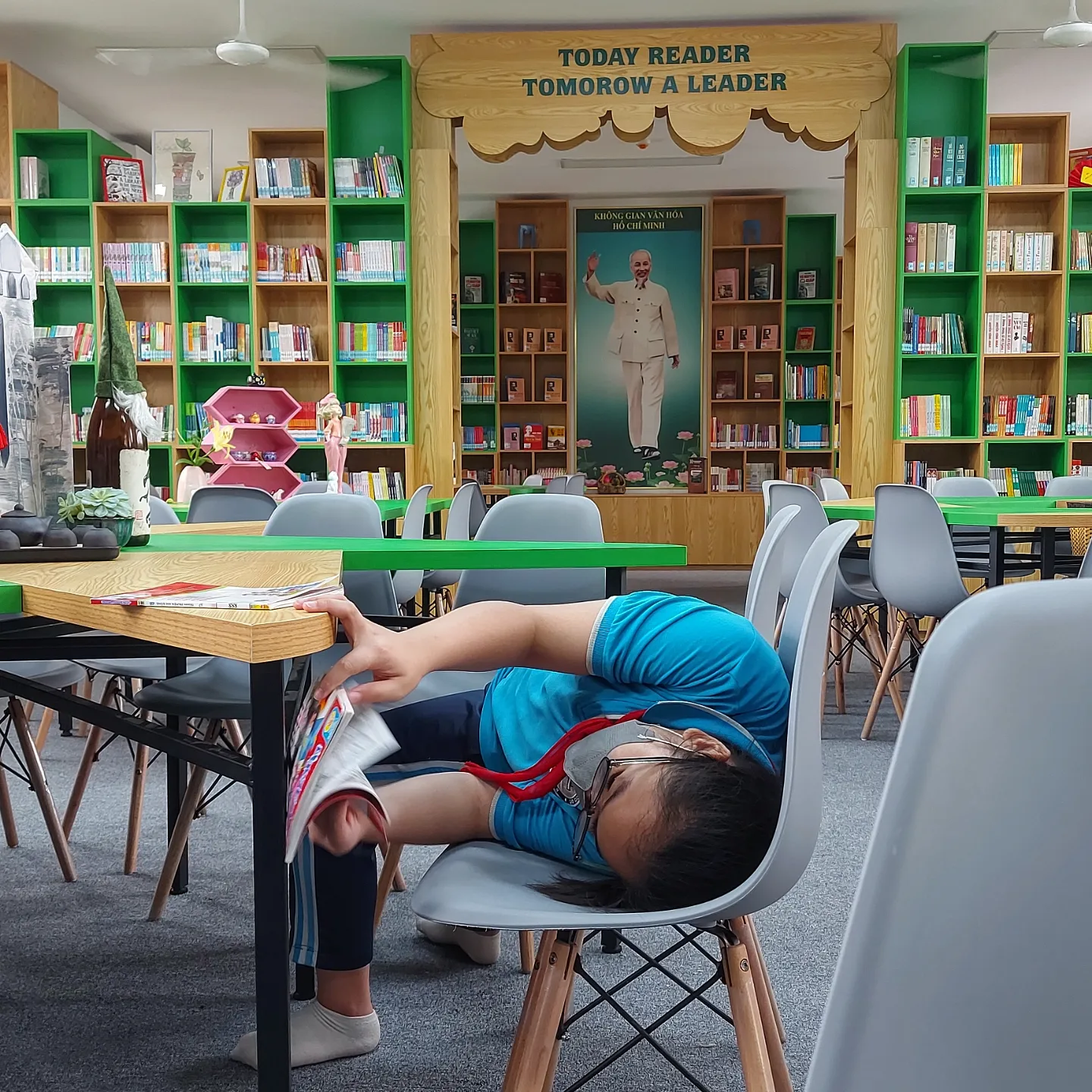 Reading rất thích câu nói của Cựu Tổng thống Mỹ Barack Obama đã nói: "Vào khoảnh khắc chúng ta quyết thuyết phục bất kỳ đứa trẻ nào bước qua bậc thềm ấy, bậc thềm của sự màu nhiệm dẫn vào thư viện. Chúng ta sẽ thay đổi nó mãi mãi, theo hướng tốt đẹp hơn". Lối vào thư viện của Reading không nằm ở khu vực trung tâm hay vị trí thuận lợi ở tầng 1 mà nó gần với mây, với trời nên cô tớ hay tự gọi đó là Thư viện trên mây. Với khoảng thời gian ít ỏi - 15 phút giờ ra chơi cũng tạm để những bạn yêu sách đến với thư viện để mượn - trả những cuốn sách mình muốn đọc. Hoặc đơn giản lên thư viện để được "chơi với cô, nói chuyện với cô".