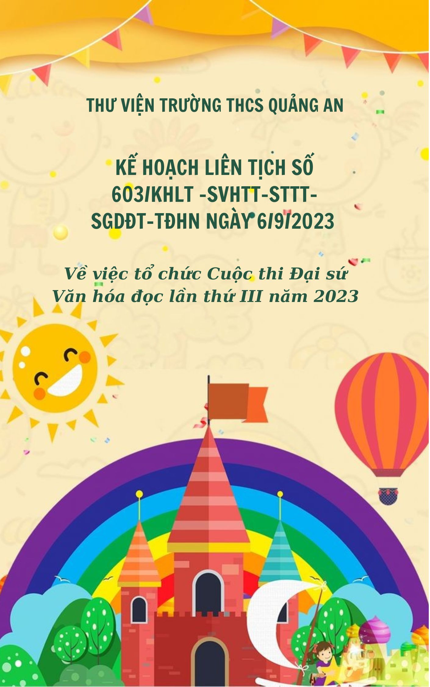 Kế hoạch liên tịch số 603/KHLT - SVHTT - STTTT - SGDDT - TĐHN ngày 6/9/2023 về việc tổ chức Cuộc thi Đại sứ Văn hóa đọc lần thứ III năm 2023