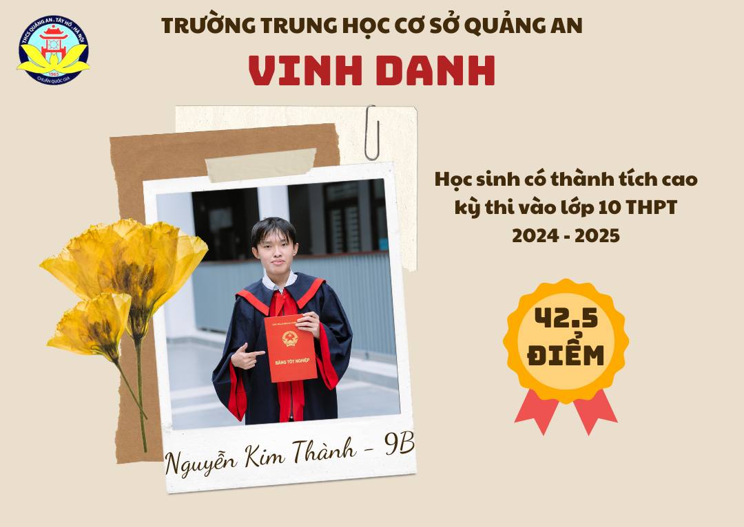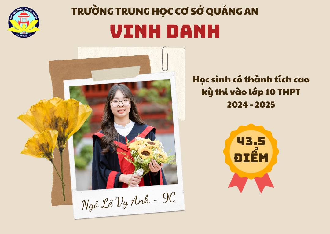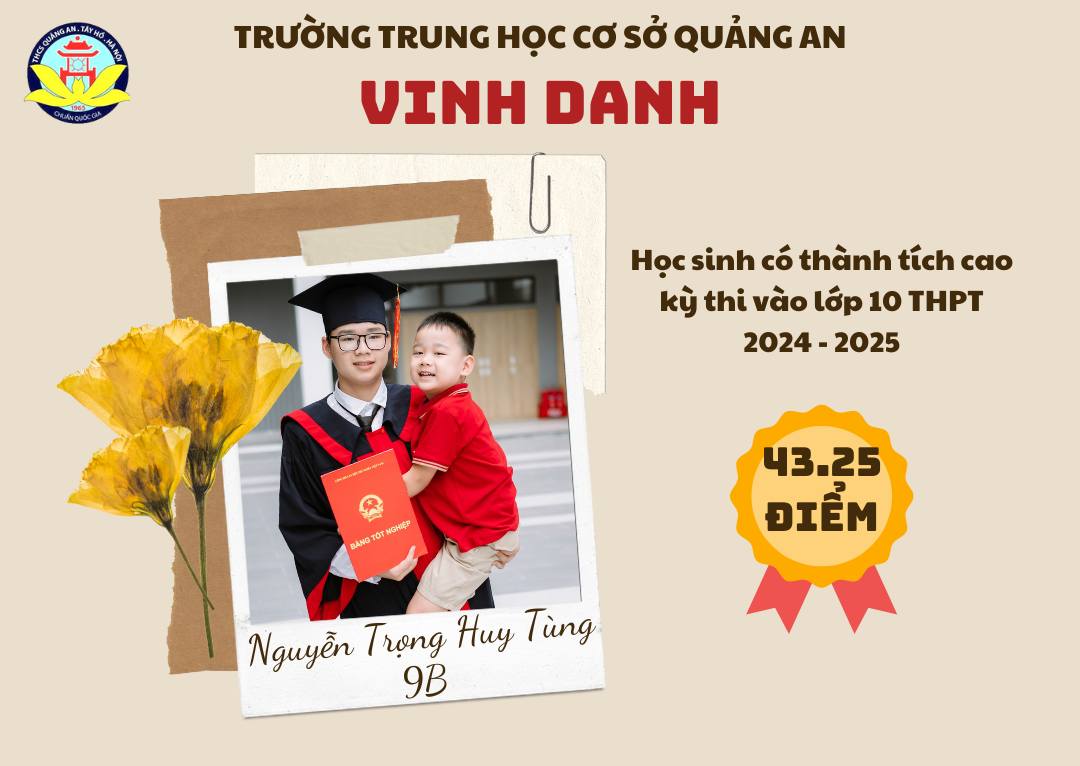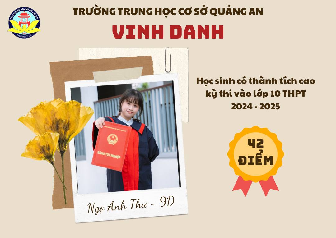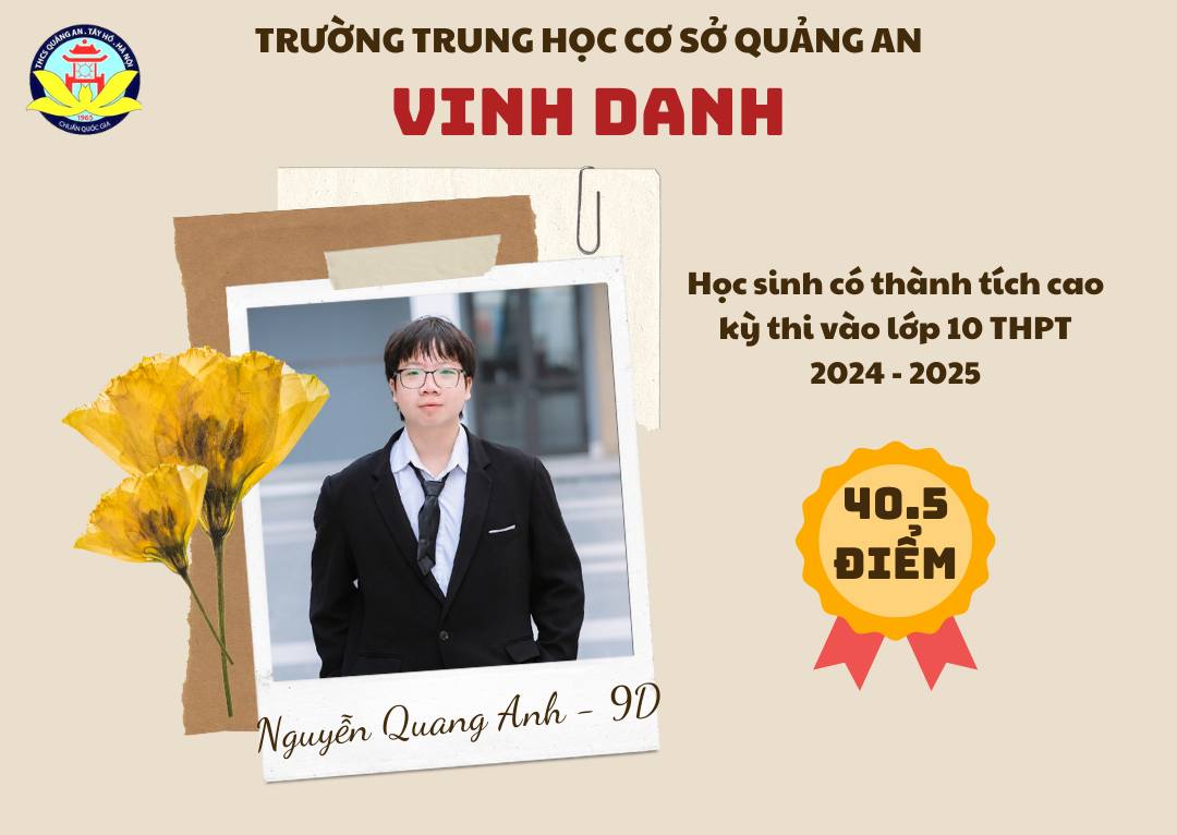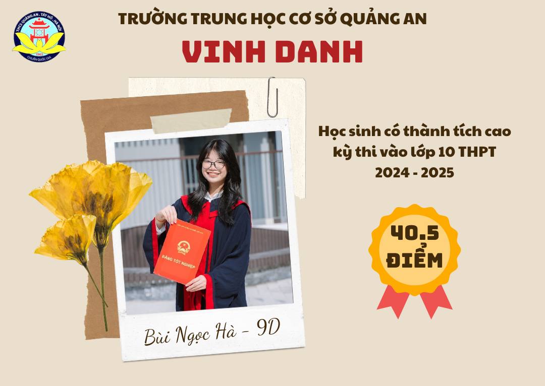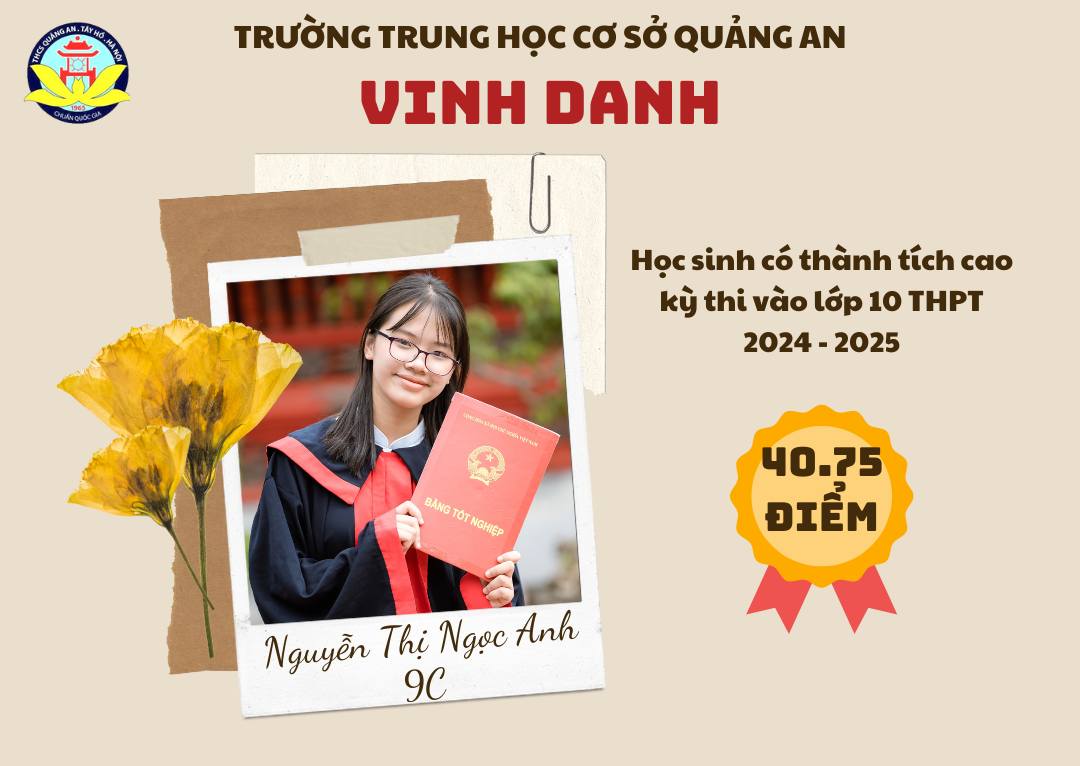 Chúc các bạn học sinh sẽ tiếp tục cố gắng, phát huy truyền thống trường THCS Quảng An và năng lực của bản thân ở ngôi trường mới để đạt được những thành tích xuất sắc hơn nữa, xứng đáng là học sinh, là niềm tự hào của thầy cô Quảng An!