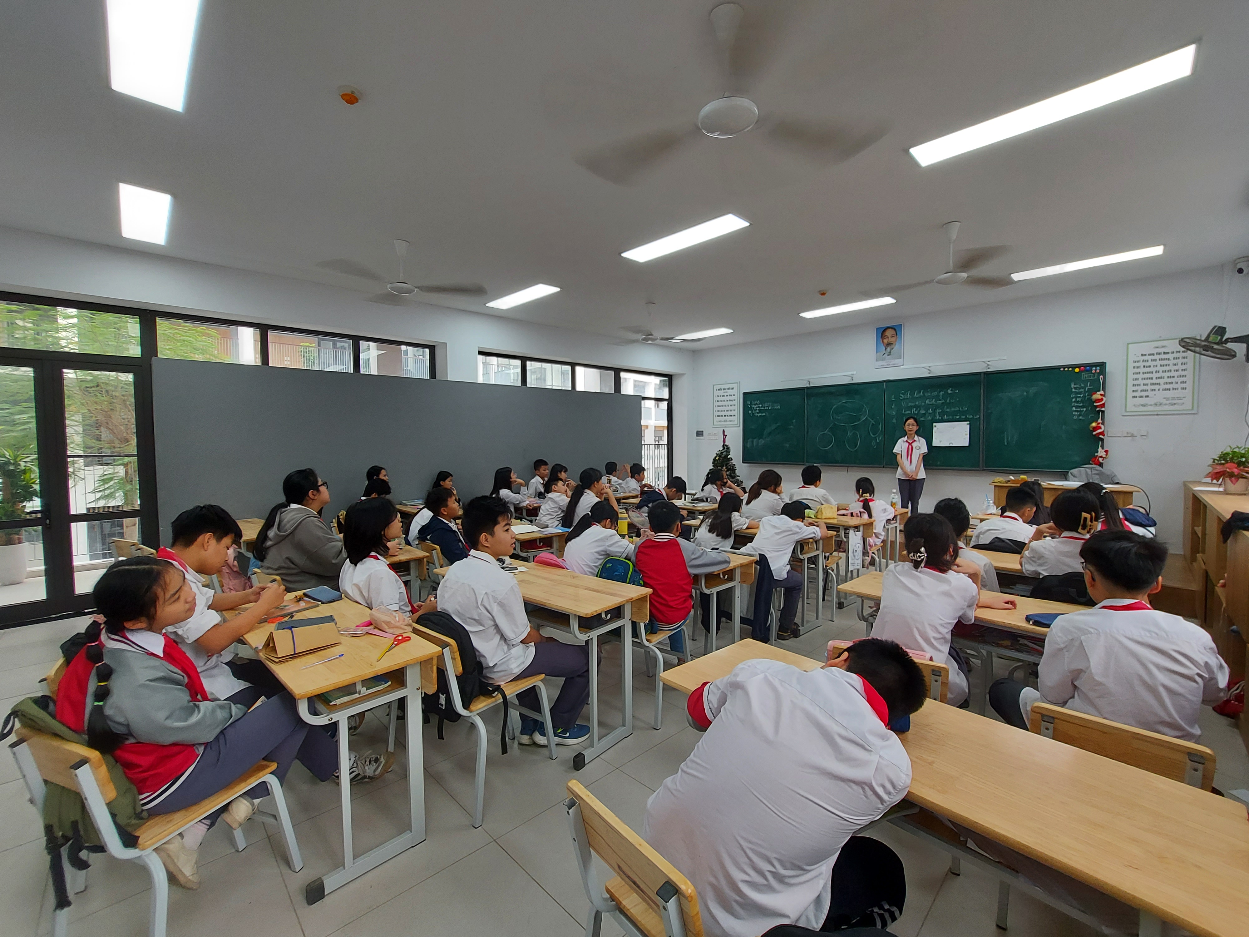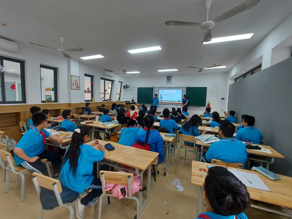 Tiết thư viện khối lớp 6 cùng thảo luận và thuyết trình chủ đề "Xây dựng năng lực tự học trong kỷ nguyên số"